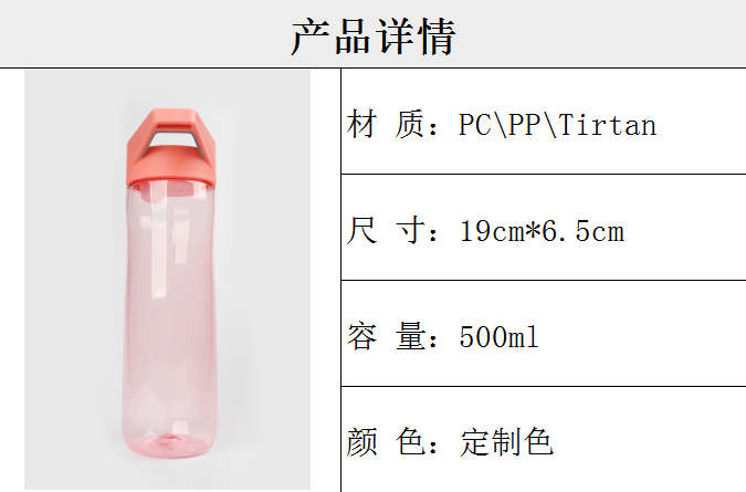 產(chǎn)品特點(diǎn):PC/PP材質(zhì),500MLDD容量,顏色可定制,
