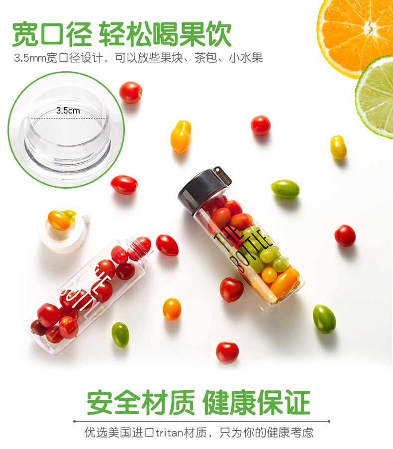 容量400ML,食品級(jí)PC+食用級(jí)硅膠,寬大注水杯口,可裝冰塊水果,絲印工藝不易掉漆